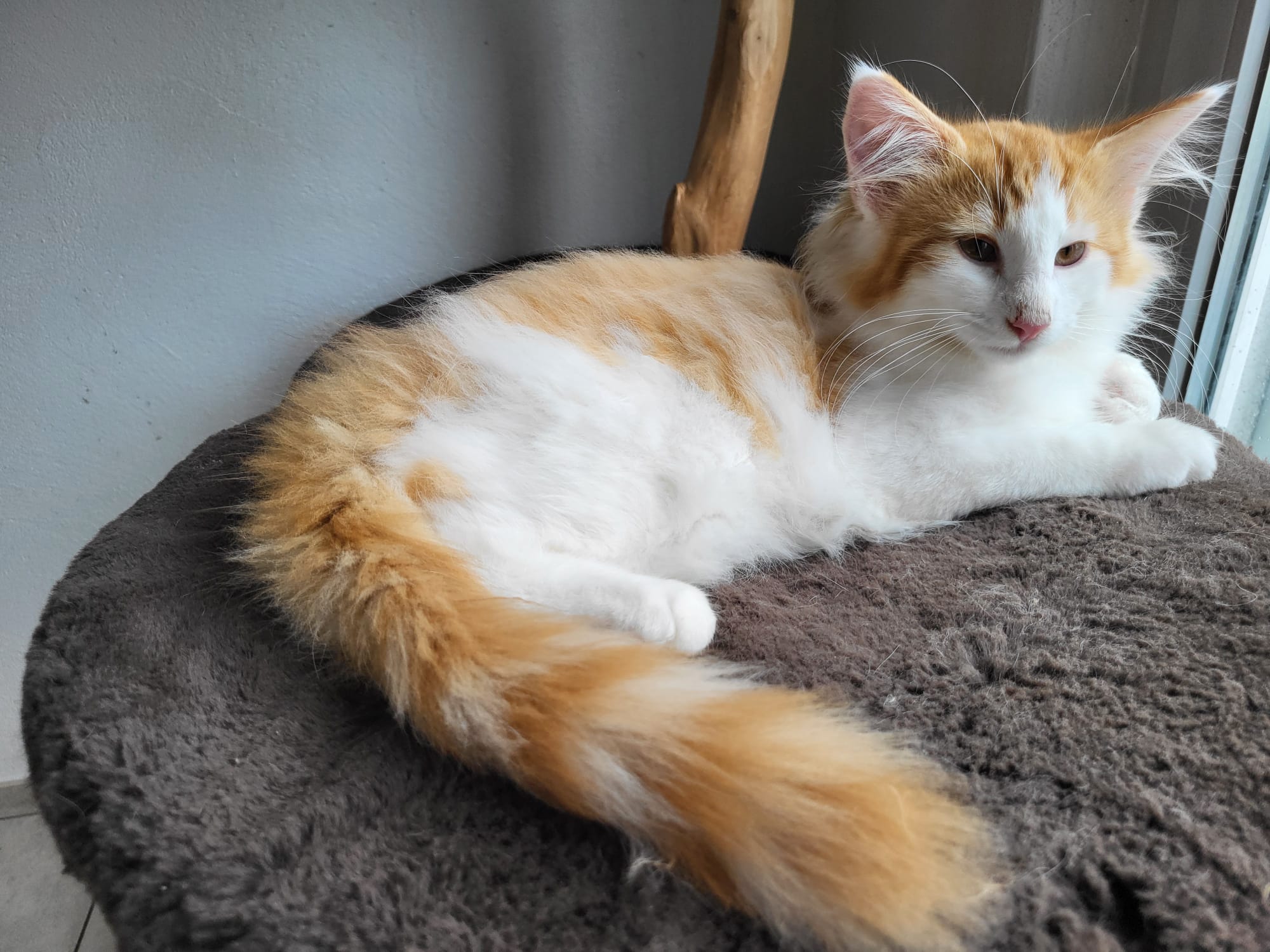 En 1995, j’ai acheté mon premier Chat des Forêts norvégiennes, le Matou rouge et blanc Conari’s Cicero. Plus tard, la Halinka vom Hummelsbach de couleur crème est arrivée.